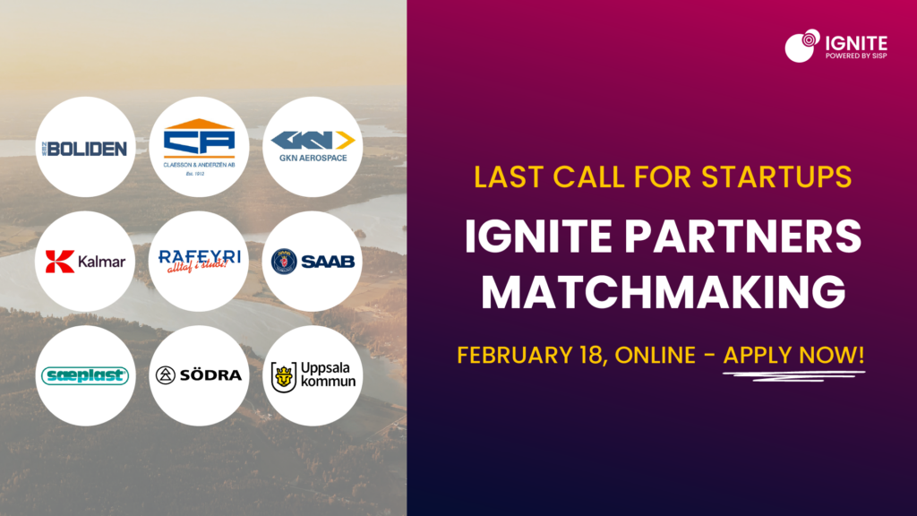 Last days to apply for our first digital matchmaking of 2026 on February 18, where Ignite Corporate Partners will be connected in tailored 1:1 meetings with top-notch startups with novel solutions for their innovation challenges.