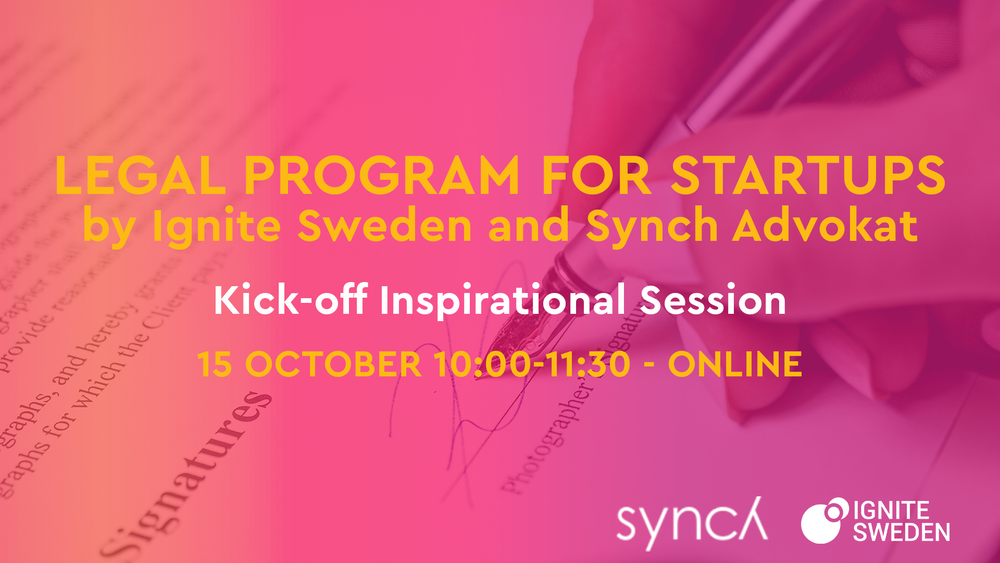 Welcome to the new Legal Program for Startups that we start this fall season! In this program, we have joined forces with Synch Advokat to bring legal support for Ignite Startup Members in their collaboration journeys.