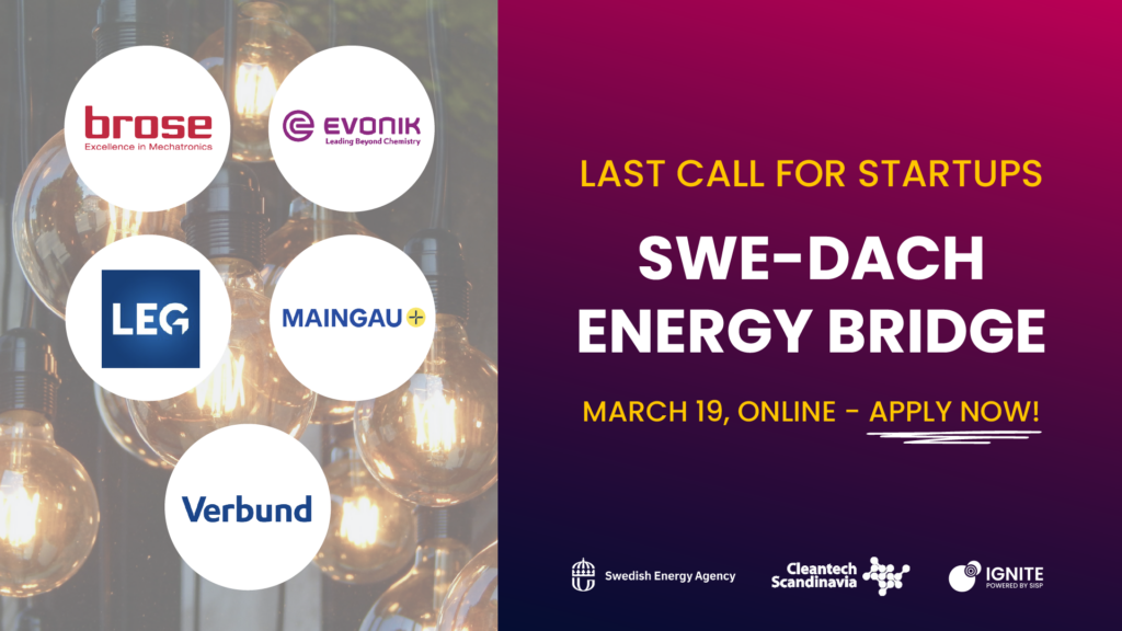 The initiative is arranged by Ignite Sweden and Cleantech Scandinavia, with funding from the Swedish Energy Agency.